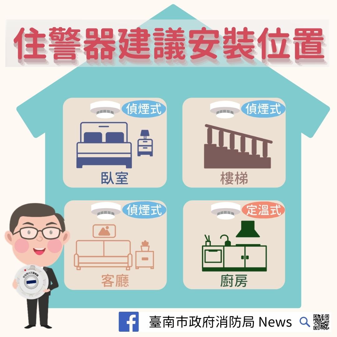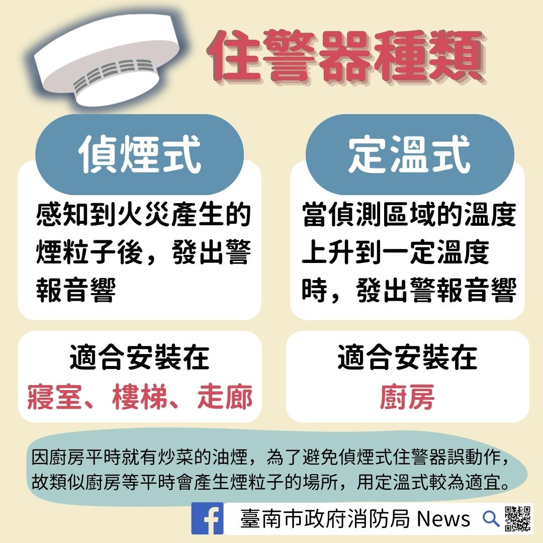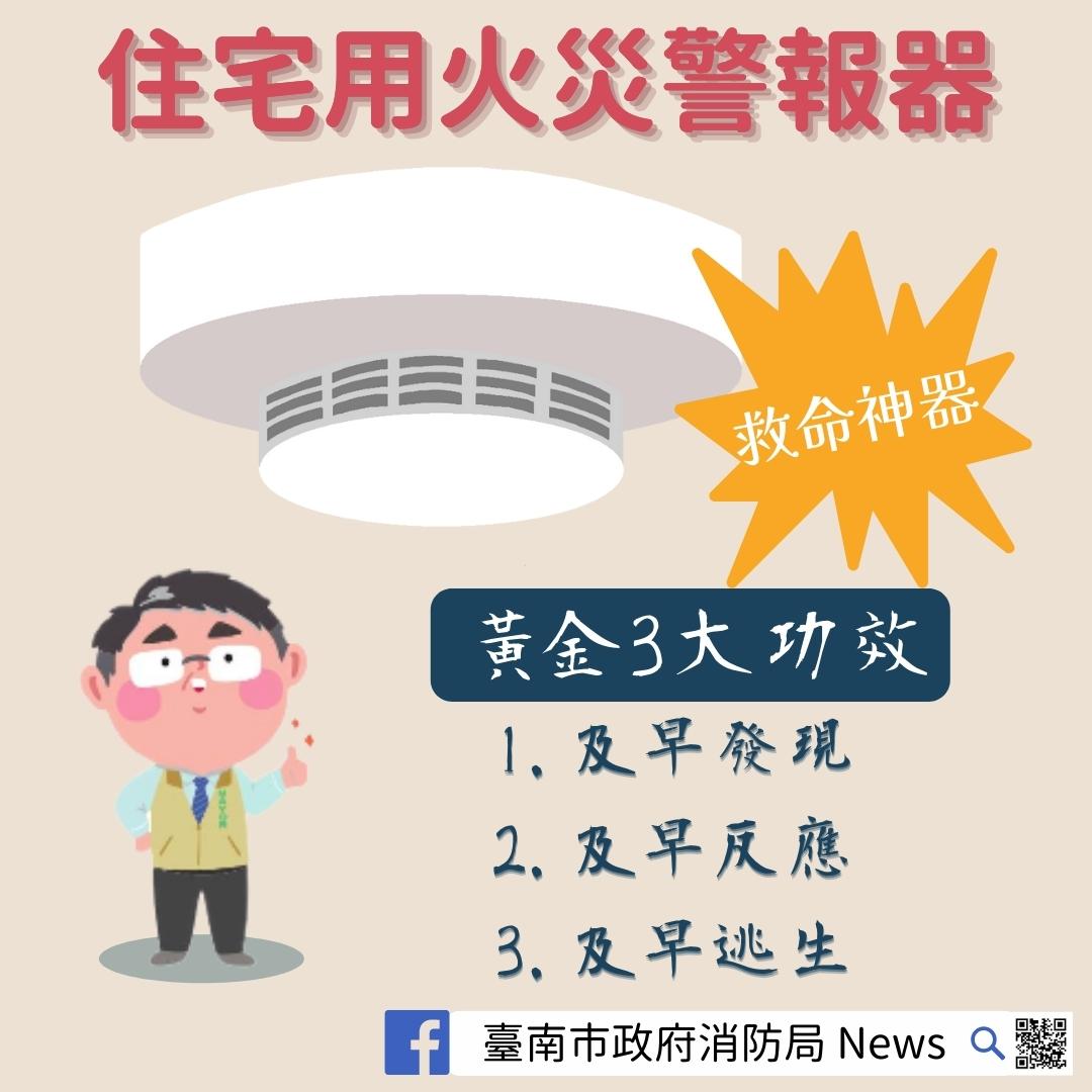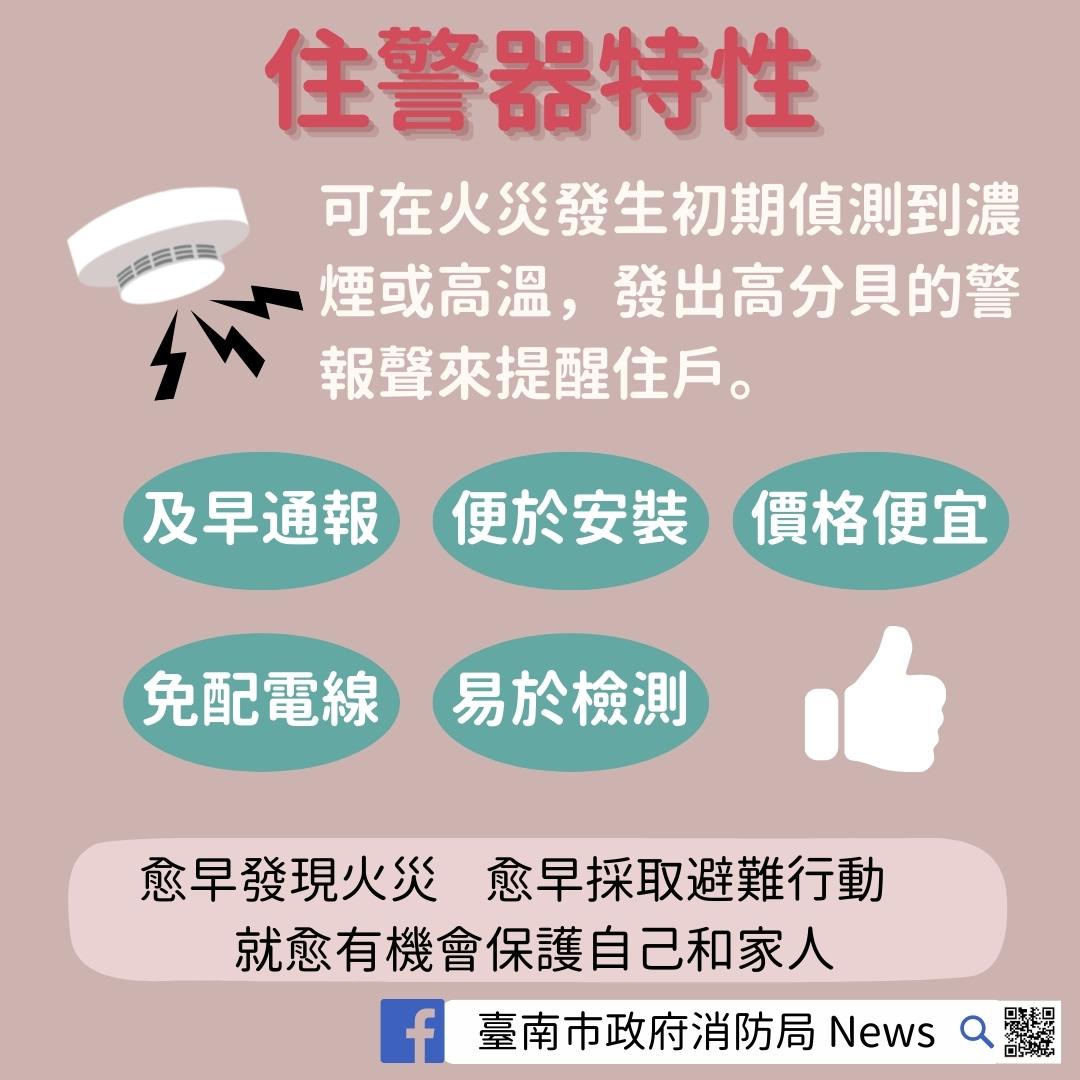 推廣設置住宅用火災警報器(簡稱住警器),請加強住警器重要性、防火常識及避難逃生要領宣導 |