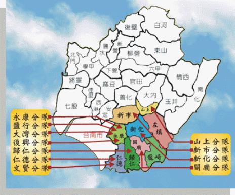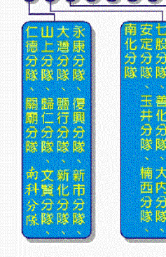 台南縣消防局轄下的第三大隊包含了永康分隊、鹽行分隊、復興分隊、大灣分隊、歸仁分隊、文賢分隊、山上分隊、新市分隊、新化分隊、關廟分隊、南科分隊以及擔任我們生命守護神的仁德分隊。第三大隊轄下的各分隊均在本縣的南端,詳見下圖。